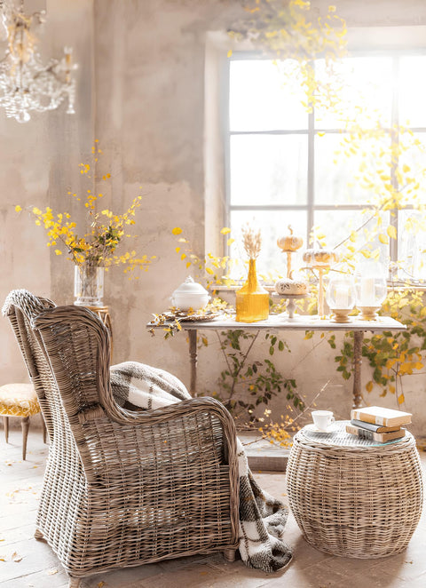 Blanc Mariclò Tavolino fumo in legno di bayur e paglia di Vienna "Euterpe" D75xH45 cm