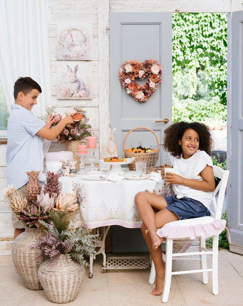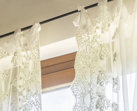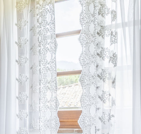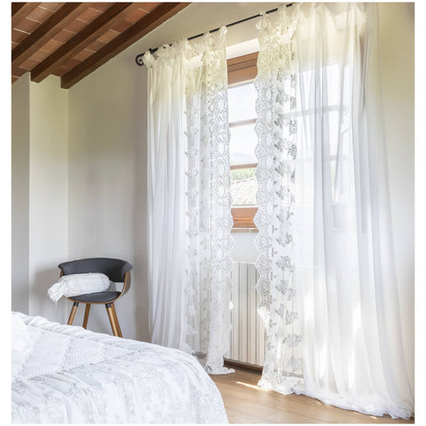 L'ATELIER 17 Tenda camera da letto o cucina in puro cotone con fiori, Collezione "Brodè", Shabby Chic 135x290 cm 2 varianti