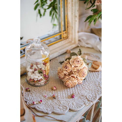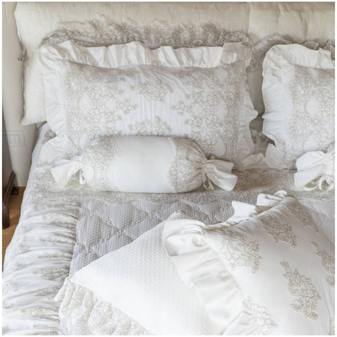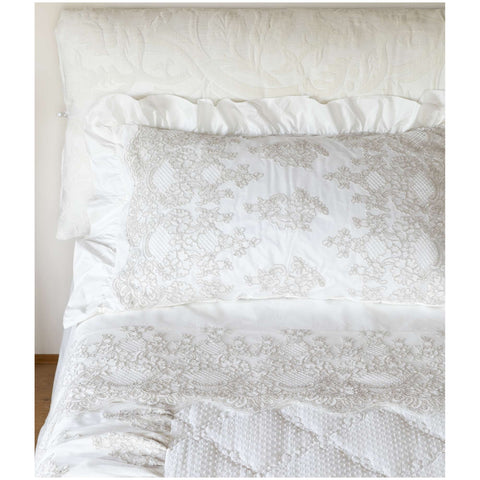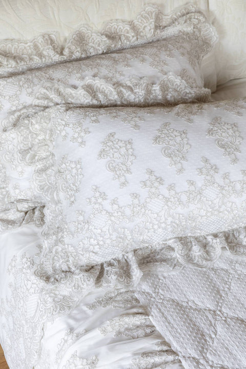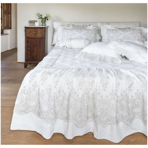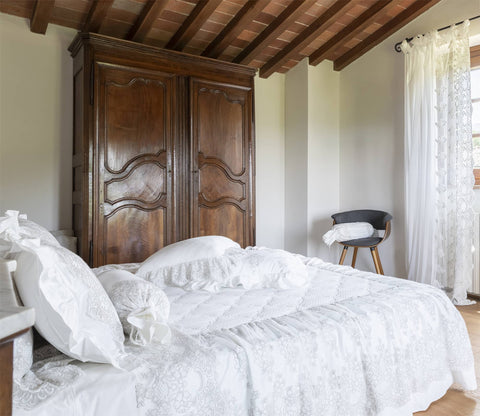 L'ATELIER 17 Tendone camera da letto, tenda in pizzo con ricamo a fiori, Collezione Sunset Shabby Chic 3 varianti 300x290 cm