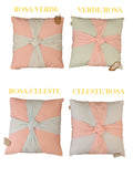Bellissimo cuscino arredo quadrato della collezione "COCCOLA", realizzato in puro cotone, arricchito da un grazioso nodo a contrasto.