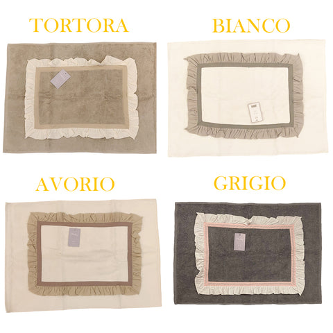 L'ATELIER 17 Set 2 asciugamani da bagno in spugna di cotone con rouches "Cloe" 6 colori