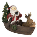 CLAYRE E EEF Decorazione Natalizia Statuetta Babbo Natale con renna su barca 22x10x13 cm