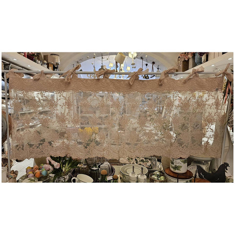 L'ATELIER 17 Tendina vetrage finestra camera da letto o cucina in total pizzo con ricamo floreale, Collezione Sunset Shabby Chic 60x240 cm 3 varianti