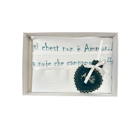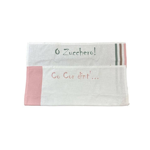 FIORI DI LENA Set 2 tovagliette in cotone con scritta in dialetto verde con scatola made in italy H 47x31 cm