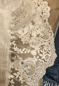 Beautiful cushion cover in pure cotton and delicate applied lace, made and finished by hand, 100% Made in Italy.