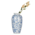 Clayre & Eef Vaso portafiori in ceramica Bianco/Blu Uccellini D17xH37 cm