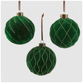 EDG - Enzo De Gasperi Green velvet Christmas ball to hang, glass Christmas decoration D10cm 3 variations (1pc).
