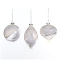GOODWILL Ice effect Christmas bauble for tree, white glass sphere with feathers D10 cm 3 variants (1pc).