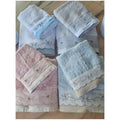 L'Atelier 17 Set of four sponge bath and guest washcloths + basket with embroidered flounce, "Nonna Rosetta" Shabby Chic, vintage 30x30 cm 6 variants (1pc).