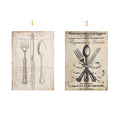 FABRIC CLOUDS Framework Canvas kitchen wooden with vintage cutlery, Belle Epoque Shabby Chic 2 variants