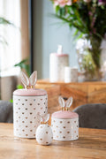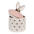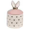 Pot de rangement en céramique Clayre & Eef avec oreilles de lapin de Pâques et coeurs, Shabby Chic D9xH14 cm.