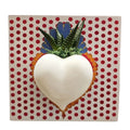 Paola Rolando Plante succulente en coeur en céramique sur un cadre décoré de pois magenta 13,5×14 cm 2 variantes (1pc).