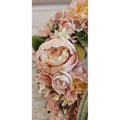 Couronne de porte de printemps Madame Fioccò avec fleurs et noeud en coton vert, Made in Italy D35xH53 cm.