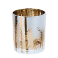 Hervit Bougeoir en verre avec décorations de cerfs et d'arbres dorés sur fond blanc avec boîte cadeau 9xh10 cm
