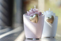 HERVIT Bougeoir coeur rose bleu et or Idée dragée mariage grès H8 cm