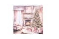 Toile Tableau Nuages Tissu Cheminée et Sapin de Noël en Bois "Darling" 30x30 cm 2 variantes (1 unité).