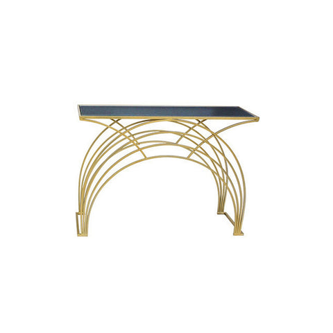 INART Tavolino consolle con piano in vetro nero metallo oro 100x31x72 cm